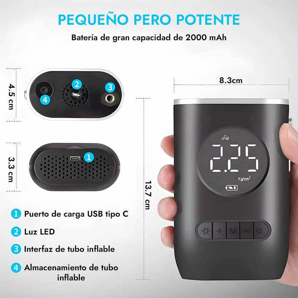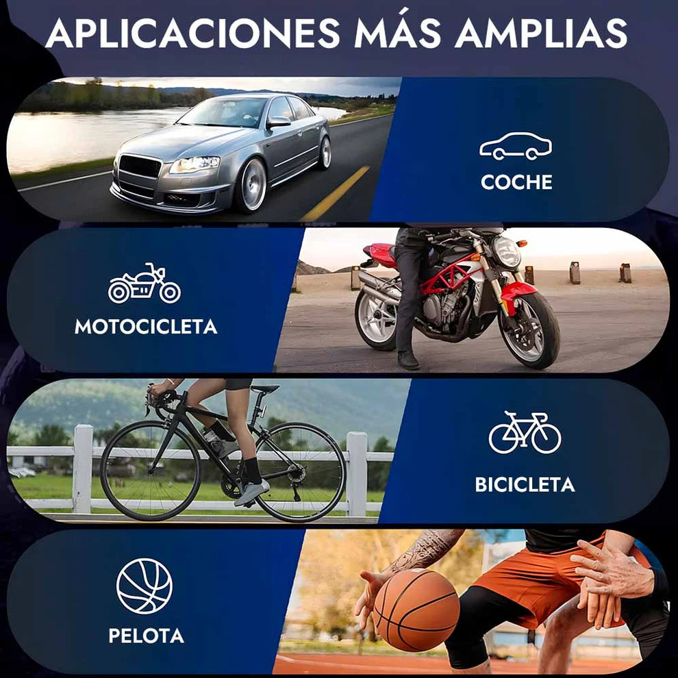 ¡Infla tus llantas en minutos, sin cables ni estrés!